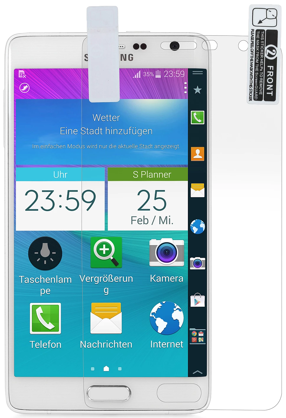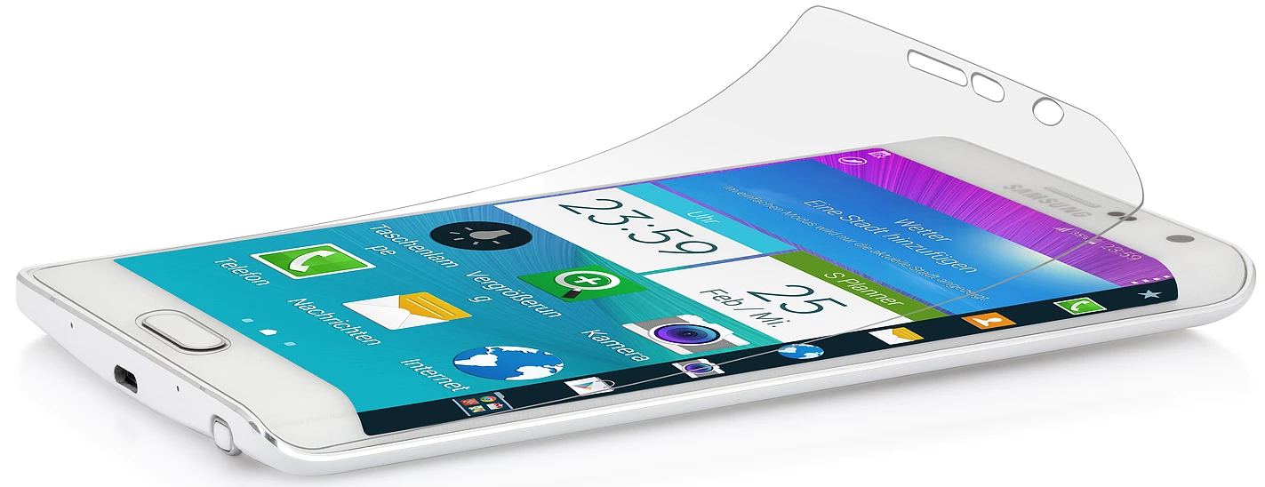 Die Folie für das Note Edge ist kratzfest, staubabweisend, entspiegelt und schmutzabweisend